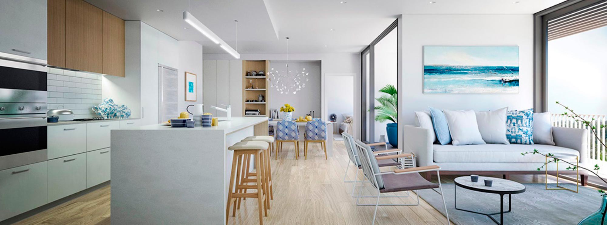 Každý z apartmánov projektu Nový Merkúr ponúka priestranné otvorené obytné plochy, plné svetla, s plynulým prechodom z kuchyne cez jedáleň a obývaciu izbu až na balkón. Okná siahajúce od podlahy až k stropu poskytujú obyvateľom dokonalé splynutie s vonkajším prostredím a ponúkaju nádherný výhľad na miestne parky a rodinné vily v okolí.