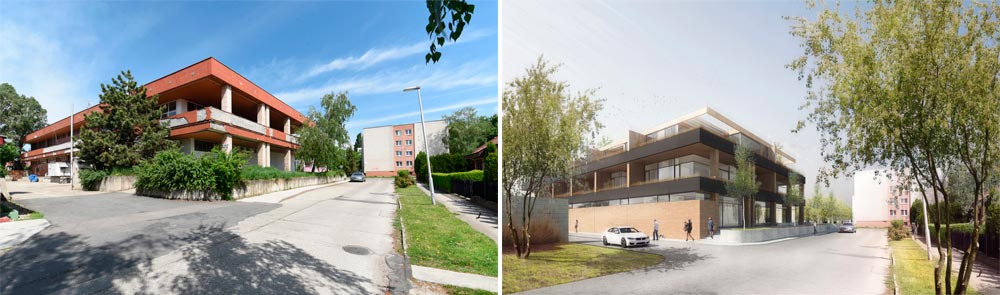 Z architektonického hľadiska bolo naším zámerom zachovať pôvodný pôdorys stavby i jej svojrázny charakter. Tento bol efektne doplnený modernými prvkami, obohatený odvážnymi vertikálnymi a horizontálnymi líniami, dotvárajúc tak jedinečný vzhľad každej bytovej jednotky. Použitie nadčasových materiálov, akými sú sklo a drevo, ešte podčiarkuje elegantnosť fasády a interiérov, ktoré sú v harmónii s okolitou krajinou a vyžarujú teplo domova.